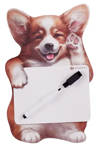 Магнитная доска c полем для рисования и письма. ВЕСЕЛЫЙ КОРГИ Размер: 165х265 мм. Материал: мелованная бумага, ферроагломерированный полимер. Отделка: полноцветная печать. Особенности: фигурная вырубка. 1 маркер в наборе.