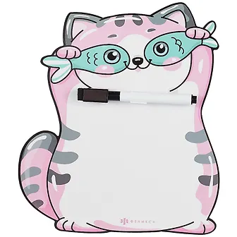 Отличная маркерная доска) У меня уже две таких) Во-первых, доска очень красивая. На глазах у котика 2 рыбки, а сам он милый и яркий. Во-вторых, в комплекте идёт чёрный фломастер, так что писать можно сразу после покупки. В-третьих, на фломастере есть и подушечка, которой можно стирать написанное. Это очень удобно. Советую эту маркерную доску к покупке всем, кто любит писать послания, рисовать, обожает котиков и ценит домашний уют)