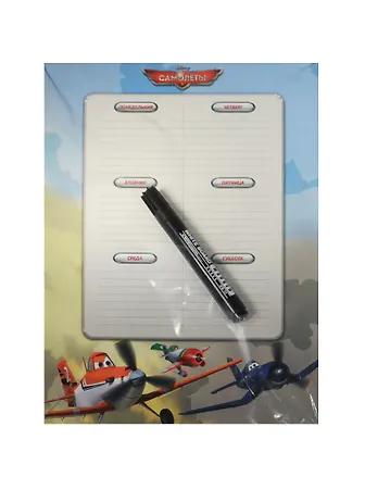 Доска маркерная «Самолёты» Disney поможет ребёнку легко организовать занятия и игры: на ней удобно писать задания, решать примеры, рисовать и оставлять короткие заметки. Записи делаются маркером из комплекта и быстро стираются — можно использовать доску снова и снова, не расходуя бумагу. Формат А4 подходит для парты, рабочего стола и поездок. Ламинированный картон лёгкий и практичный, а знакомые персонажи поддержат интерес к учёбе. Рекомендовано детям от 6 лет.