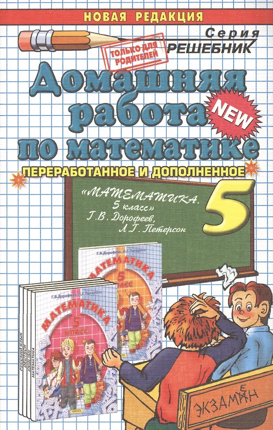 Домашняя работа по математике за 5 класс к учебнику Г.В. Дорофеева, Л.Г. Петерсон "Математика. 5 класс"" Предлагаемое пособие содержит образцы выполнения всех заданий и упражнений из учебника "Математика. 5 класс. / Г. В. Дорофеев, Л. Г. Петерсон. - 2-е издание, перераб. - М.: Ювента, 2011". Пособие адресовано родителям, которые смогут проконтролировать правильность решения, а в случае необходимости помочь детям в выполнении домашней работы по математике.