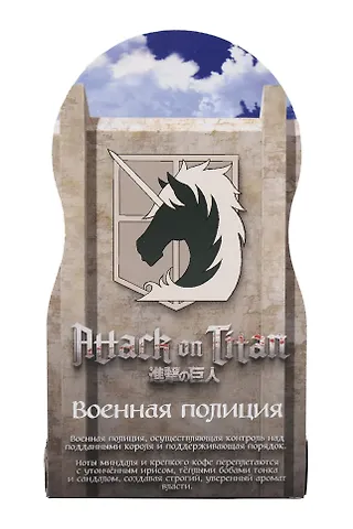 Под мраморным сводом, где порядок важнее истины, рождается аромат, вдохновлённый Военной полицией из аниме «Атака Титанов». Он несёт в себе запах власти, которая знает цену покоя, и тень тех, кто выбрал безопасность вместо свободы. Здесь не слышно ветра с разрушенных стен — лишь приглушённые шаги по каменным коридорам и дыхание города, спящего под охраной страха.