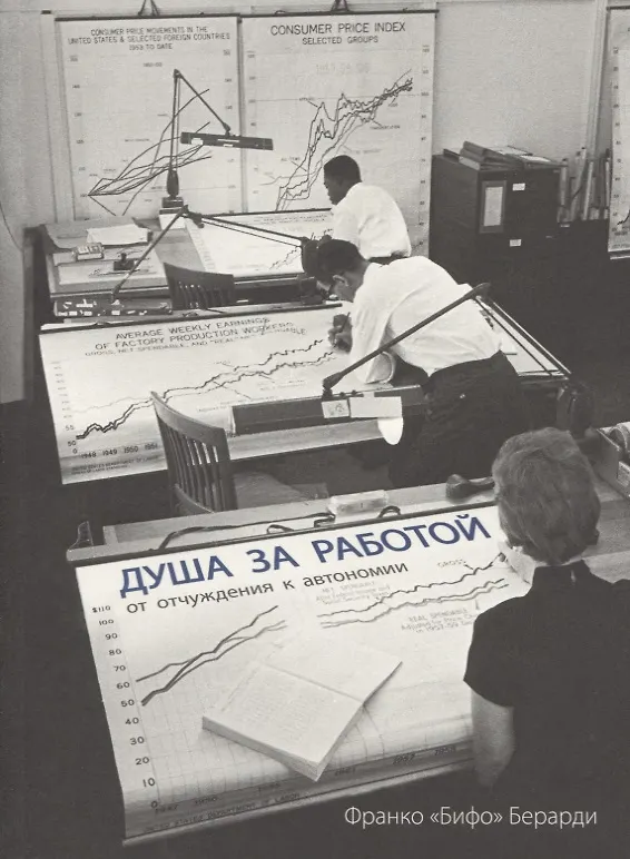 В своем исследовании итальянский марксист, футуролог и теоретик медиа Франко Берарди обращается к современности, хотя книга написана давно и является своеобразным манифестом его идей. Доминирование экономического фактора и иеформационных технологий привело к парадоксу: автоматизация труда вместо освобождения человека заставила его душу полностью вовлечься в процесс труда. Под "душой" подразумевается метафора (открытость другим людям, новому опыту, способность тела к жизни), никакой религиозности или трансцендетности. Исследование Берардт очень тесно соприкасается с проблемами психологии, человеческой коммуникации и психопатологии. Он соединяет марксизм с делезовским жизоанализом и киберкультурой, а также использует кинематографические источники (фильмы Ясудзидо Одзи, Антониони и Бергмана).