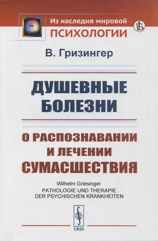 Вниманию читателей предлагается книга выдающегося немецкого психиатра и невропатолога, одного из основоположников научной психиатрии Вильгельма Гризингера (1817--1868), посвященная рассмотрению психических заболеваний, их диагностики и лечения. Работа включает пять разделов. В первом разделе книги освещаются методы изучения душевных болезней, исследуются элементарные умственные расстройства, а также элементарные расстройства чувствительности и движения. Во втором разделе рассматриваются причины психических болезней, индивидуальная и общая предрасположенность к ним. Третий раздел посвящен описанию форм психических болезней. В четвертом разделе излагается патологическая анатомия психических за