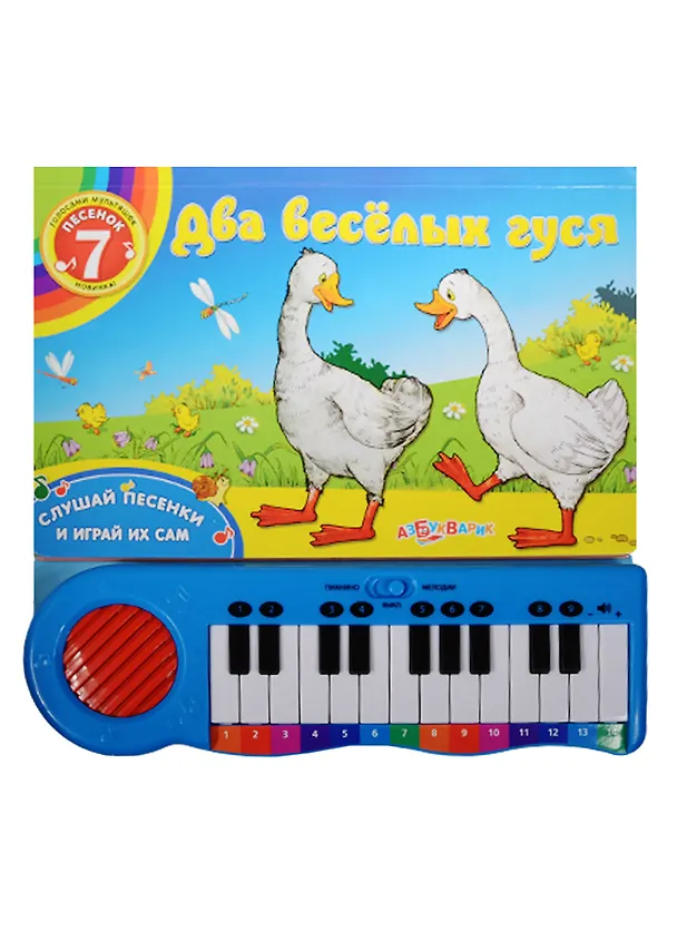 Книги с пианино на любой вкус - с лучшими детскими песенками! Ребёнок сможет послушать 7 песенок и подобрать их по нотам. После этого нетрудно будет научиться играть на настоящем пианино!