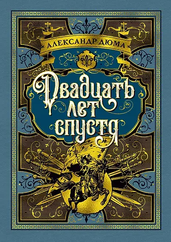 Синяя с золотом обложка с выпуклыми элементами и "боевой" иллюстрацией