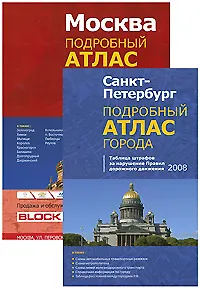 Комплект содержит подробные атласы Москвы и Санкт-Петербурга.