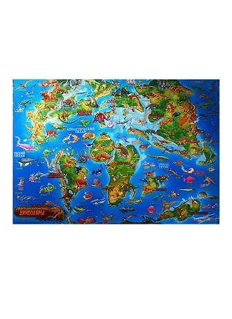 Детская карта мира «Динозавры» превращает знакомство с материками и океанами в игру: яркие доисторические герои помогают удерживать внимание ребёнка и легче запоминать названия. Карту удобно использовать дома, в детском саду или на занятиях — можно вместе искать страны и обсуждать, где «живёт» тот или иной динозавр.