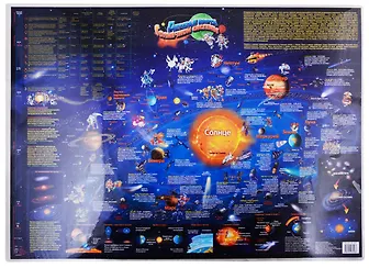 Двухсторонняя карта «Звёздного неба» поможет ребёнку познакомиться с космосом без сложных учебников: на одной стороне — ориентиры по звёздам и созвездиям, на другой — детская карта Солнечной системы с планетами и их расположением. Такой наглядный материал удобно повесить в комнате или использовать на уроках окружающего мира, для проектов и домашних занятий. Ламинированная поверхность защищает лист от случайных загрязнений и делает карту практичной для частого использования.