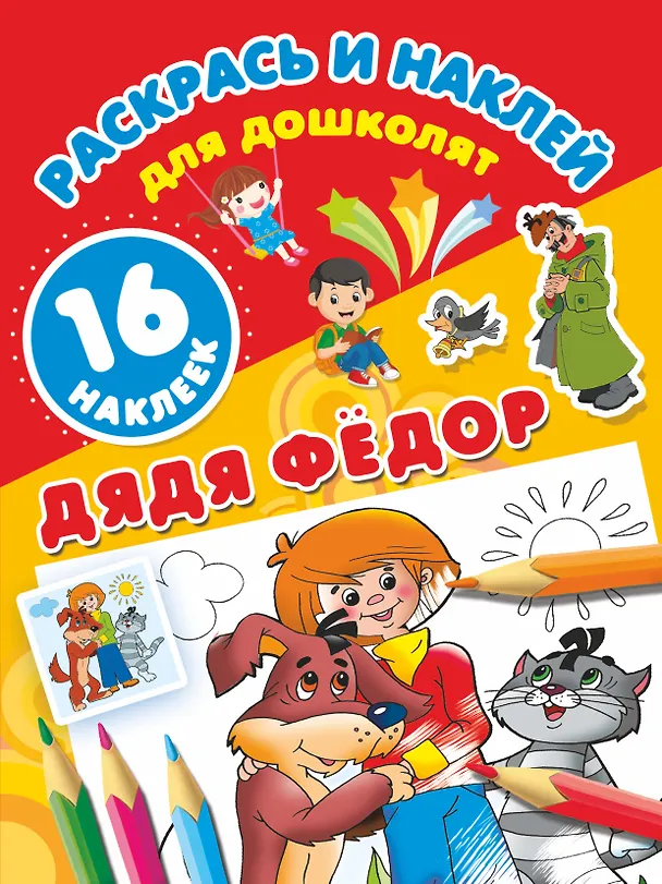 Книжка-раскраска с яркими наклейками любимых героев знаменитого мультфильма «Трое из Простоквашино» порадует всех малышей.
