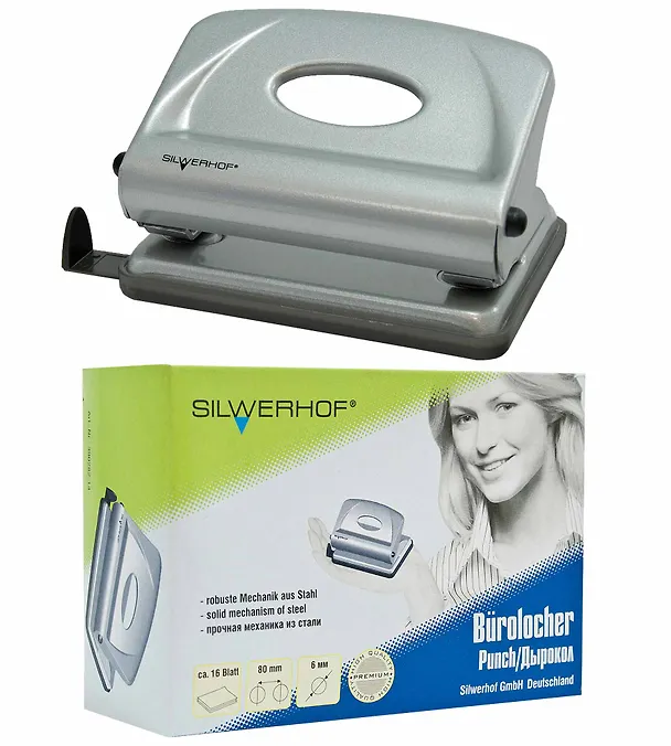 Дырокол 16 листов металический Elegance, серебряный, Silwerhof
