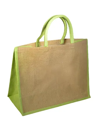 Джутовая сумка с зелеными торцами. 43x34x19 см, длина ручки- 36 см, PB2190