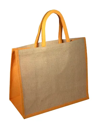 Джутовая сумка с желтыми торцами. 43x34x19 см, длина ручки- 36 см, PB2189