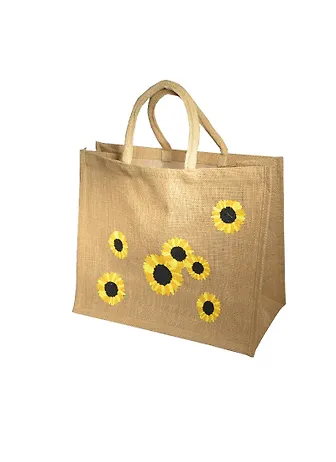 Джутовая сумка "Подсолнухи" 43x34x19 см, длина ручки- 36 см, PB1480