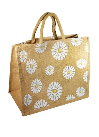 Джутовая сумка "Ромашки" 43x34x19 см, длина ручки- 36 см, PB2113