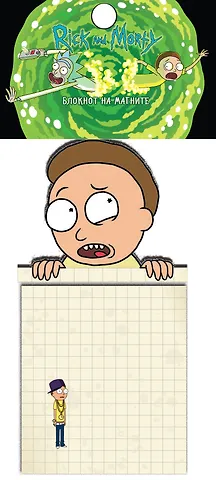 — В общем, чего только во вселенной не происходило, но такого еще не было: Морти - блокнот на магните! Ну, чего же ты ждешь? Заказывай его скорее!