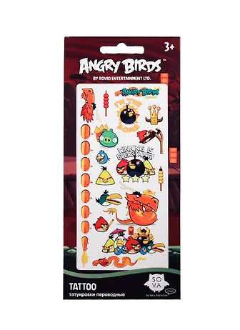 Татуировки переводные для лица и тела "ANGRY BIRDS" подходят для декорирования твердых поверхностей.