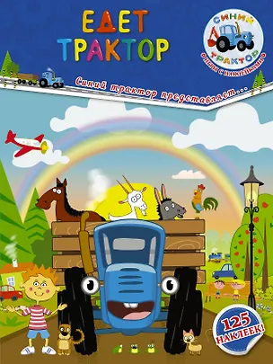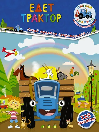 Книжка о приключениях Синего трактора, главного героя популярных мультфильмов в сети Интернет, собравших миллионы просмотров и десятки тысяч подписчиков, составлена из коротких стихов про зверей, которых весело катают разноцветные трактора . Кроха с удовольствием угадает, кто же прячется в прицепе. А яркие наклейки помогут малышу в развитии цветовосприятия и мелкой моторики.
