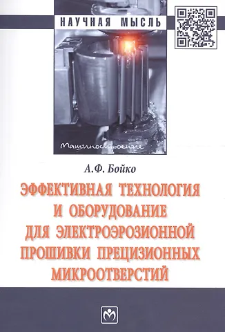 В монографии изложены результаты исследований и разработки высокопроизводительной технологии и оборудования для электроэрозионной прошивки прецизионных микроотверстий. Дается анализ мировых технологий получения микроотверстий, представлены результаты разработки новой эффективной элементной базы процесса и оборудования, предложены методы оптимизации параметров процесса электроэрозионной прошивки микроотверстий. Представлены результаты промышленного применения новой технологии и оборудования.Предназначена для преподавателей вузов, докторантов, аспирантов, студентов специальности "Технология машиностроения", а также для инженерно-технических работников машиностроительных отраслей.
