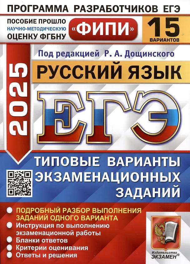 ЕГЭ 2025. Русский язык. 15 вариантов. Типовые варианты экзаменационных заданий