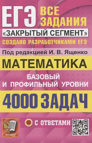 ЕГЭ. 4000 задач с ответами по математике. Все задания "Закрытый сегмент". Базовый и профильный уровни