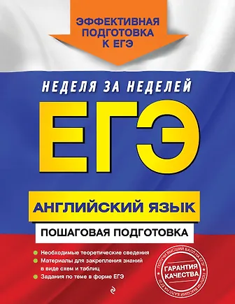 ""ЕГЭ. Английский язык. Пошаговая подготовка"" - это учебное пособие, которое представляет все темы школьного курса по английскому языку, необходимые для успешной сдачи ЕГЭ. Вся информация в книге организована в четкой и структурированной форме, разделенная на 36 логических блоков (недель), каждый из которых включает теоретические сведения, задания для самоконтроля в виде схем и таблиц, а также задания в формате ЕГЭ.