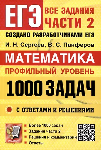 Сборник содержит более 1000 заданий части 2 Единого государственного экзамена по математике профильного уровня. Книга позволит подготовиться к любому прототипу заданий части 2. В сборнике приведены ответы ко всем заданиям, а также решения части задач из всех прототипов части2. Пособие необходимо учителям, учащимся старших классов, их родителям, а также методистам и членам приемных комиссий. Приказом № 699 Министерства образования и науки Российской Федерации учебные пособия издательства «Экзамен» допущенык использованию в общеобразовательных организациях.
