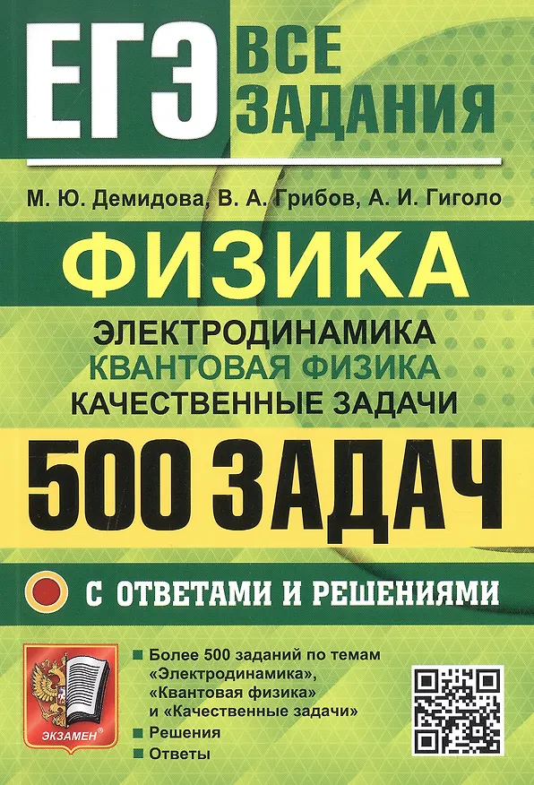 ЕГЭ. Физика. Электродинамика. Квантовая физика. Качественные задачи. 500 задач с ответами и решениями
