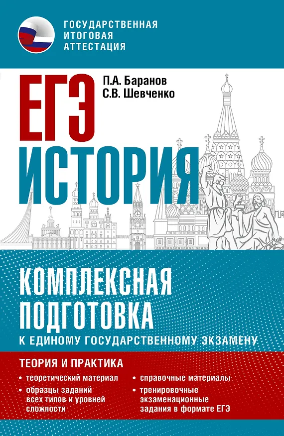 Нередко слышна критика автора Баранова, мол, в сборниках ошибки, информация не соответствует экзамену. Однако этот справочник стал для меня открытием – он очень классно структурирован!! Говорю как человек, ненавидящий схемы в принципе, но именно тут они супер. Очень наглядно, интуитивно понятно, тут есть такие детали, о которых я даже не слышала за 2 года изучения истории. Рекомендую!