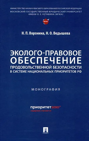 В монографии рассмотрены вопросы стратегического планирования и эколого-правового обеспечения продовольственной безопасности в системе национальных приоритетов РФ. Раскрыты особенности стратегического планирования в сфере обеспечения продовольственной безопасности и эколого-ориентированного развития сельского хозяйства. Исследованы отдельные меры правовой охраны окружающей среды при осуществлении сельскохозяйственной деятельности в условиях современных экологических вызовов, предложено авторское решение отдельных экологических проблем сельского хозяйства. Нормативные акты приведены по состоянию на 1 августа 2023 г. Для обучающихся по программам специалитета, бакалавриата и магистратуры, аспи