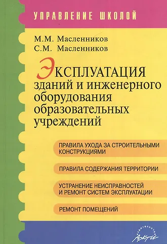 Методические рекомендации предназначены для руководителей образовательных учреждений, заместителей по хозяйственной работе, слушателей курсов повышения квалификации. В брошюре изложены современные требования к эксплуатации зданий и инженерного оборудования различных видов образовательных учреждений, технология выполнения отдельных строительных процессов. Ввиду того, что администрации образовательных учреждений приходится проводить перепланировку, капитальный ремонт зданий, инженерного оборудования, поэтому приведены минимальные теоретические сведения о действиях и работе отдельных конструктивных элементов здания и инженерного оборудования. Приведены образцы исполнительных документов, которые