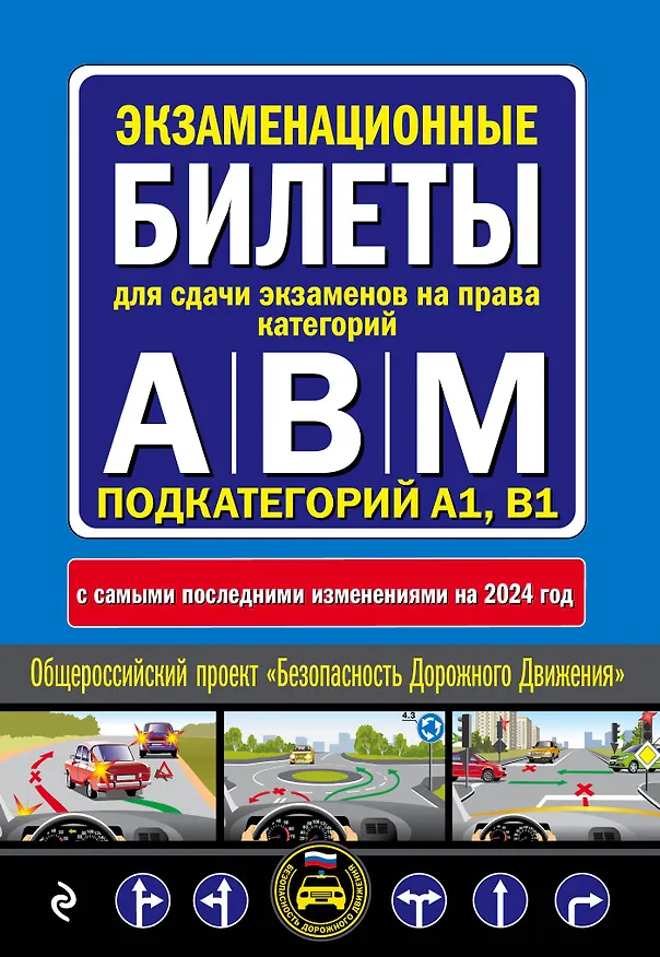 Издание содержит все 800 вопросов экзаменационных билетов для сдачи экзамена на категории прав "А", "В" "M", подкатегории A1, B1. Данный перечень является официальным, максимально точным и содержит все изменения и дополнения, имеющиеся на момент подготовки издания, на 2024 год.