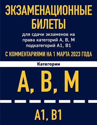 Экзаменационные билеты для сдачи экзаменов на права категорий А, В, М подкатегорий А1, В1 с комментариями на 1 марта 2023 года