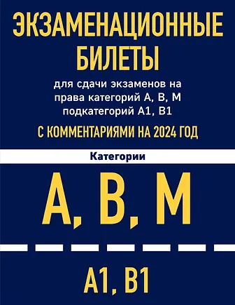 Экзаменационные билеты для сдачи экзаменов на права категорий А, В, М подкатегорий А1 В1 с комментариями на 2024 год