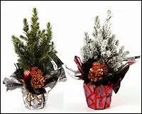 Ель зеленая в праздничной упаковке с новогодним букетиком 9\35 (203)