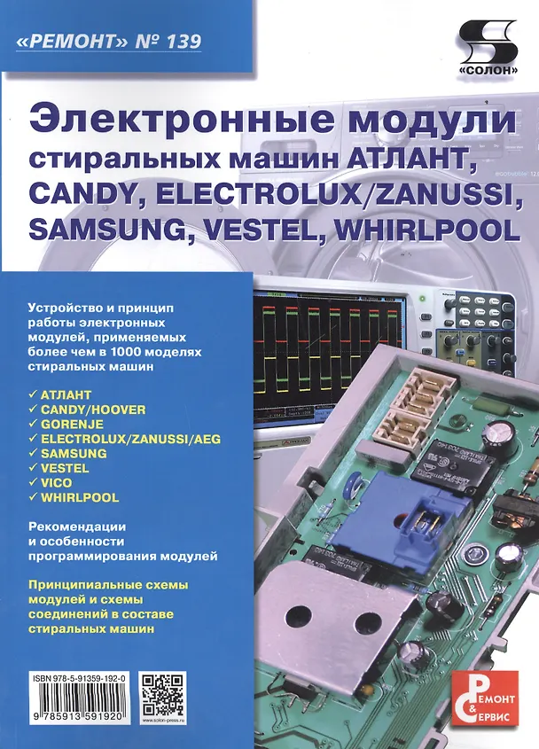 Электронные модули стиральных машин АТЛАНТ, CANDY, ELECTROLUX / ZANUSSI, SAMAUNG, VESTEL, WHIRLPOOL. Приложение к журналу "Ремонт & Сервис" (выпуск № 139)