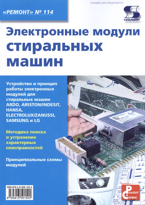 В книге рассматриваются электронные модули современных стиральных машин ARDO, HANSA, ARISTON/INDESIT, ELECTROLUX/ZANUSSI, SAMSUNG, LG и BOSCH/SIEMENS. В ней впервые дано описание универсального электронного модуля, созданного украинскими разработчиками. Впервые на большинство электронных модулей публикуются их принципиальные схемы. Кроме описания модулей, приводятся их характерные неисправности и способы устранения.