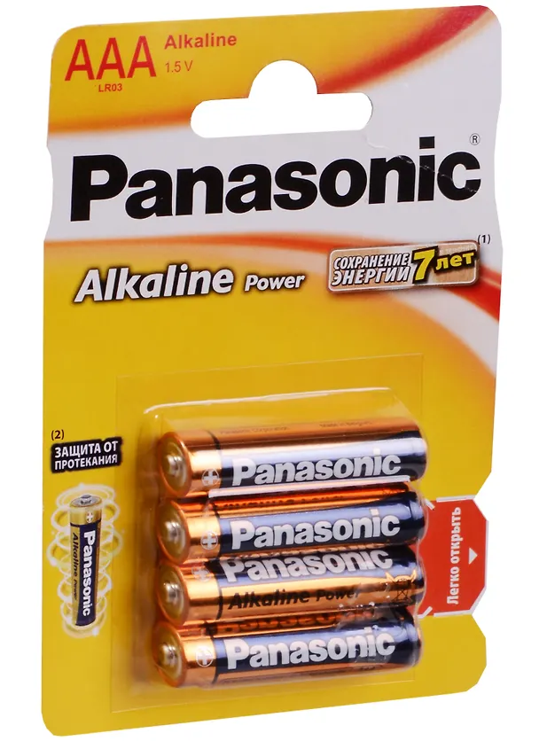 Элементы питания 4шт "Panasonic Alkaline" LR03, AAA, блистер