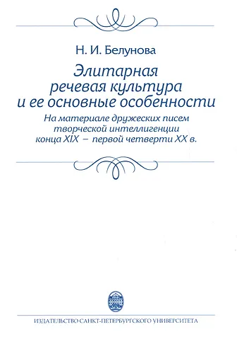 Элитарная речевая культура и ее основные особенности. (На материале дружеских писем творческой интеллигенции конца XIX - первой четверти XX в.) Учебно