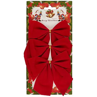 В наборе 3 ярко-красных бантика с подвижным золотистым креплением. С его помощью вы сможете закрепить банты там, где они будут смотреться лучше всего.
