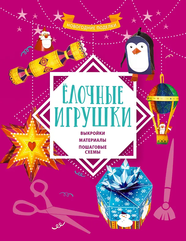 Яркая брошюра для изготовления новогодних украшений своими руками. Выкройки вырезаются прямо из книжки, к каждой поделке есть пошаговая иллюстрированная инструкция. Бумага, из которой вырезаются заготовки, – плотный офсет, благодаря чему поделки легко складываются и склеиваются.