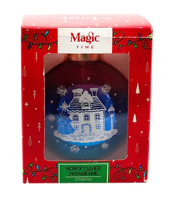 Елочный шар в подарочной коробке LED Домик (стекло) (8x8) (89858)