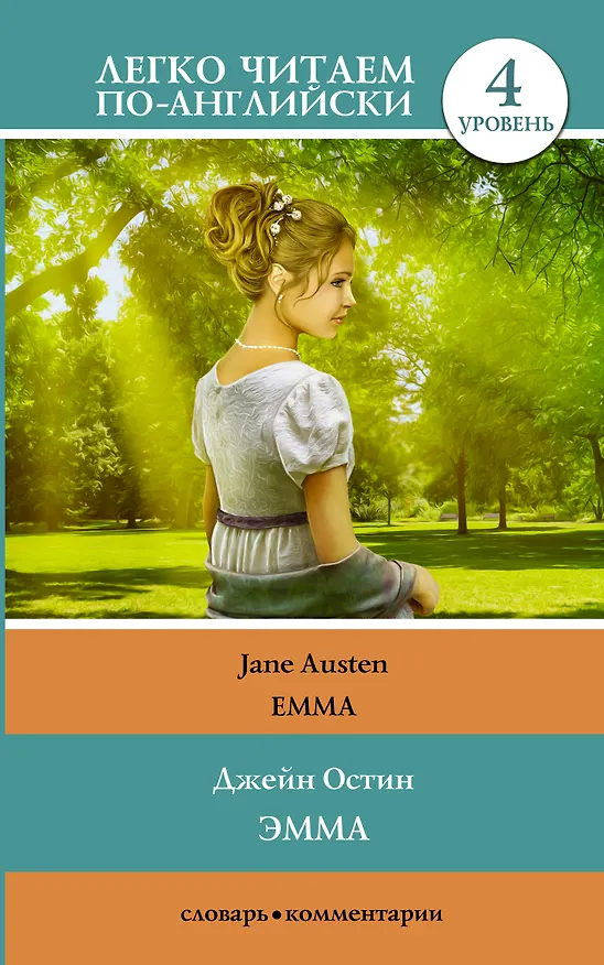 Эмма Джейн Остин-произведение, которое ничуть не уступает произведению "Гордость и предубеждение", атмосфера старой Англии пленит и не отпускает, чему способствует и родной произведению язык. Главная героиня Эмма добрая и весёлая девушка, которая не боится отстаивать свое мнение. Всё персонажи яркие и интересные,а главное не шаблонные, им хочется сопереживать и в их кругу хочется оказаться. Кроме интересного сюжета, данная вариация помогает подтянуть английскую грамматику, пополнить словарный запас и отлично провести время.