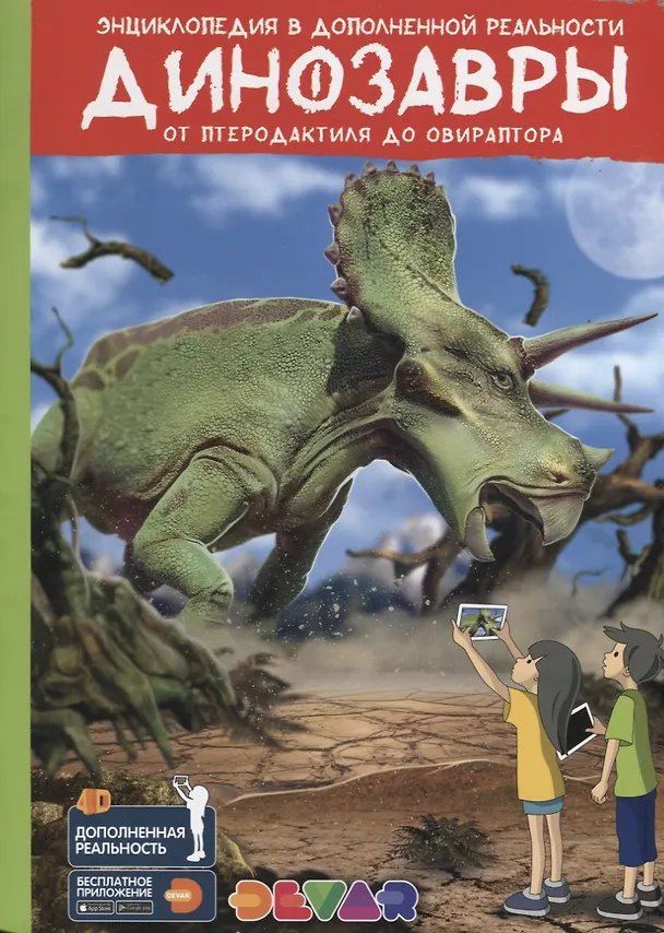 Стать исследователем динозавров может каждый. С помощью приложения DEVAR динозавры появятся на страницах этой энциклопедии! Накорми динозавра: узнай, хищник перед тобой или травоядный. Управляй динозаврами: они будут ходить или летать. Используй для этого джойстик на экране в приложении. Держи динозавров на руке, делай с ними фото и видео. Нажимай иконку под динозаврами, и ты узнаешь много интересных фактов об этих древних животных.