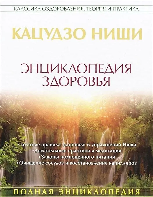 Жить и болеть абсолютно не свойственно человеку, и Система здоровья Кацудзо Ниши позволяет не только вернуть себе здоровье, но и сохранить его на долгие годы. Эта книга о том, как стать здоровым, чтобы благополучно, счастливо и активно прожить долгую жизнь. «Энциклопедия здоровья» подойдет каждому. И тем, кто только начинает свой путь к здоровью и процветанию, и тем, кто уже давно практикует занятия по Системе Ниши. В этой энциклопедии подробно и последовательно рассказано о каждом этапе Системы здоровья. Вы пройдете путь от полного очищения организма до счастья и процветания. Очищение организма; переход к правильному питанию; выполнение физических и дыхательных упражнений; воспитание ума ме