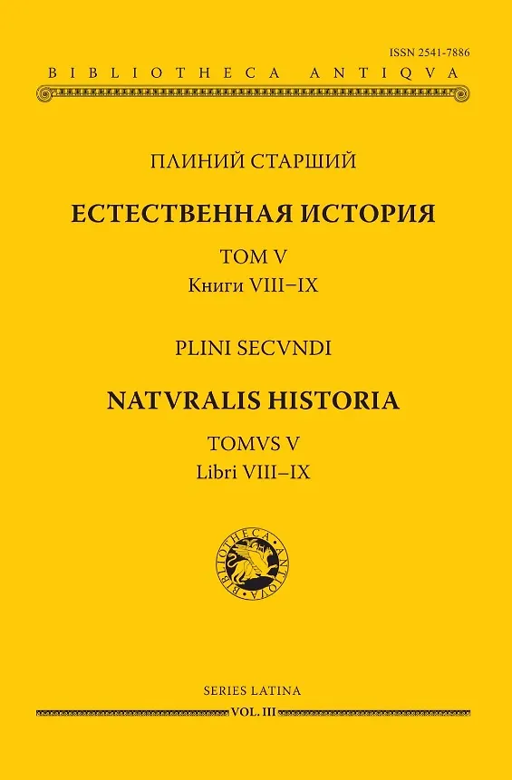 Эта книга продолжает двуязычную публикацию многотомной «Естественной истории» римского писателя-энциклопедиста Плиния Старшего (23/24 гг. н. э. – 79 г. н. э.), в которой содержится практически весь опыт античной культуры и науки, накопленный ко времени жизни Плиния. В настоящем томе публикуются латинский текст и русский перевод VIII и IX книг «Естественной истории» Плиния Старшего, а также комментарий к тексту. Эти книги посвящены зоологии. Книга будет интересна не только специалистам-антиковедам, но и широкому кругу читателей.