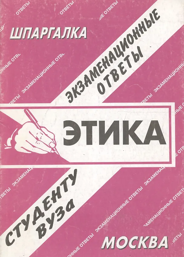 Экзаменационные ответы по курсу "Этика" составлены в соответствии с программой и Государственным образовательным стандартом.Издание не претендует на роль учебника или методического пособия - его цель стать опорным, вспомогательным материалом и оказать реальную помощь при подготовке и сдаче экзамена. В пособии предоставлены основные вопросы курса "Этика": общие моральные понятия, история развития этики, важнейшие моральные учения, нравственный опыт человека, проблемы прикладной этики.Для студентов, как помощь при сдаче экзамена по курсу "Этика".
