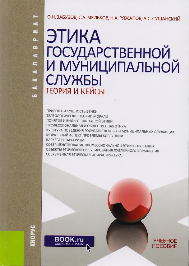 Рассмотрены важнейшие этические и морально-нравственные проблемы государственной и муниципальной службы, системы государственного и муниципального управления. В значительной степени систематизирован современный зарубежный опыт решения этических проблем в управленческой деятельности. Прикладная часть пособия полностью базируется на учебных кейсах. Каждая глава снабжена контрольными вопросами и заданиями, списком литературы для самостоятельного изучения. Соответствует ФГОС ВО последнего поколения. Для студентов, обучающихся по направлению подготовки 38.03.04 «Государственное и муниципальное управление» (уровень бакалавриата). Будет полезно и студентам, обучающимся по направлению 38.04.04 «Госу