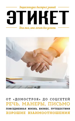 Этикет — свод правил поведения — зародился в глубокой древности, а слово для обозначения этих правил появилось в обозримом прошлом, при дворе Людовика XIV. Он занимает весьма значительное место в политике, культуре, образовании. Но не менее важен он и в повседневности, в обычном общении, не выходящим за рамки семьи и трудового коллектива. Ведь этикет — это не только руководство, как быть вежливым и воспитанным. Это еще и способ наладить хорошие взаимоотношения с людьми — членами семьи, друзьями, работодателями, коллегами. Знание особенностей этикета, основанного на традициях и заимствованиях, поможет и при поездке за рубеж. Как правильно вести себя на собеседовании? На званом вечере? В театр