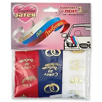 ЕВРОПА Веселая Затея Лента д/авто "Совет да любовь" триколор 3шт 1501-1247
