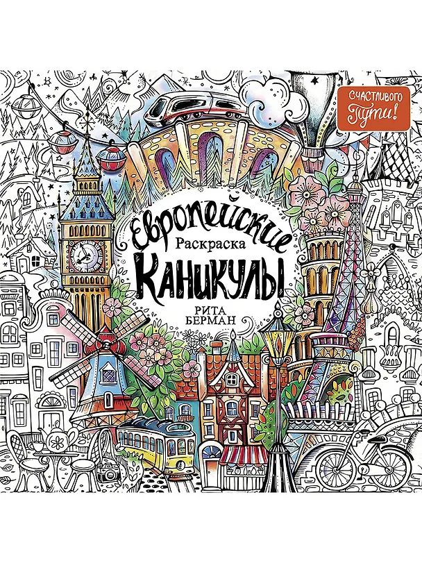 Соберите рюкзак и вперед, в путешествие по Европе! Не забудьте взять с собой яркие карандаши, ведь перед вами раскраска, на страницах которой оживают каналы Венеции, величественные площади Вены и пестрые дома Лиссабона. Пройдитесь по улочкам Амстердама, сделайте селфи на фоне Пизанской башни, выпейте чаю в дождливом Лондоне, а потом можно устроить пикник на лужайке в Провансе или нырнуть с маской у греческих берегов. Каждая страница — билет в новую страну. Вас ждут культовые достопримечательности и идиллические пейзажи, а еще страницы с растениями и животными, уличной едой, лавки с открытками и чайные с видом на горы. Раскрашивайте и отдыхайте от рутины, чтобы вернуться домой с полным чемод